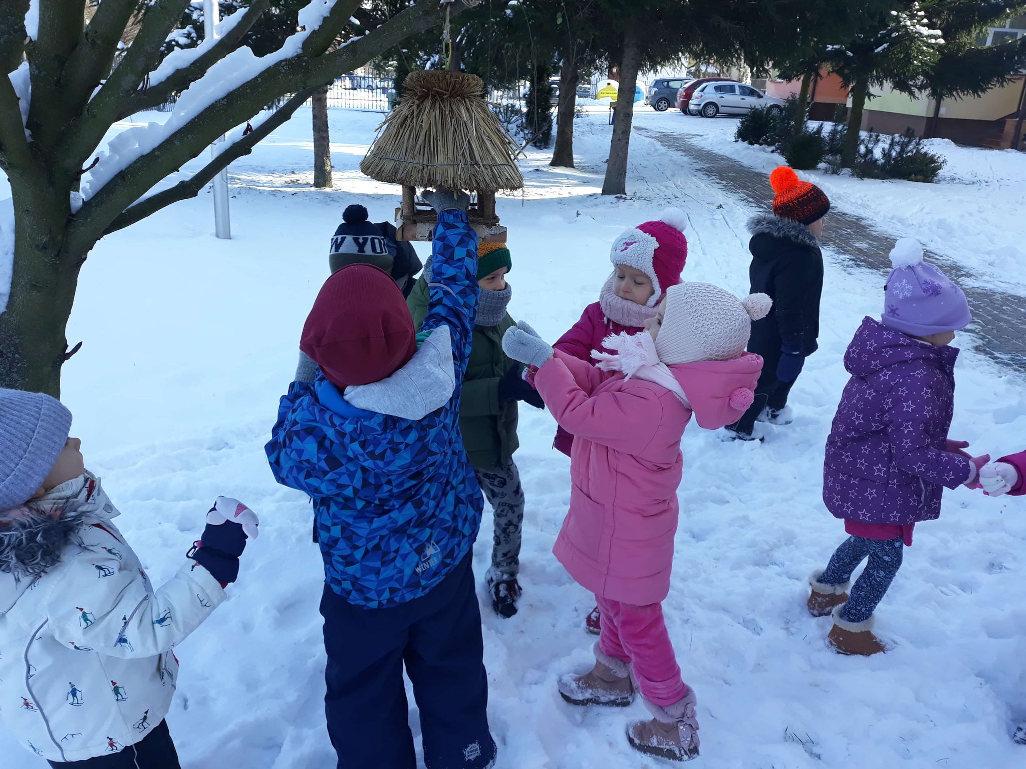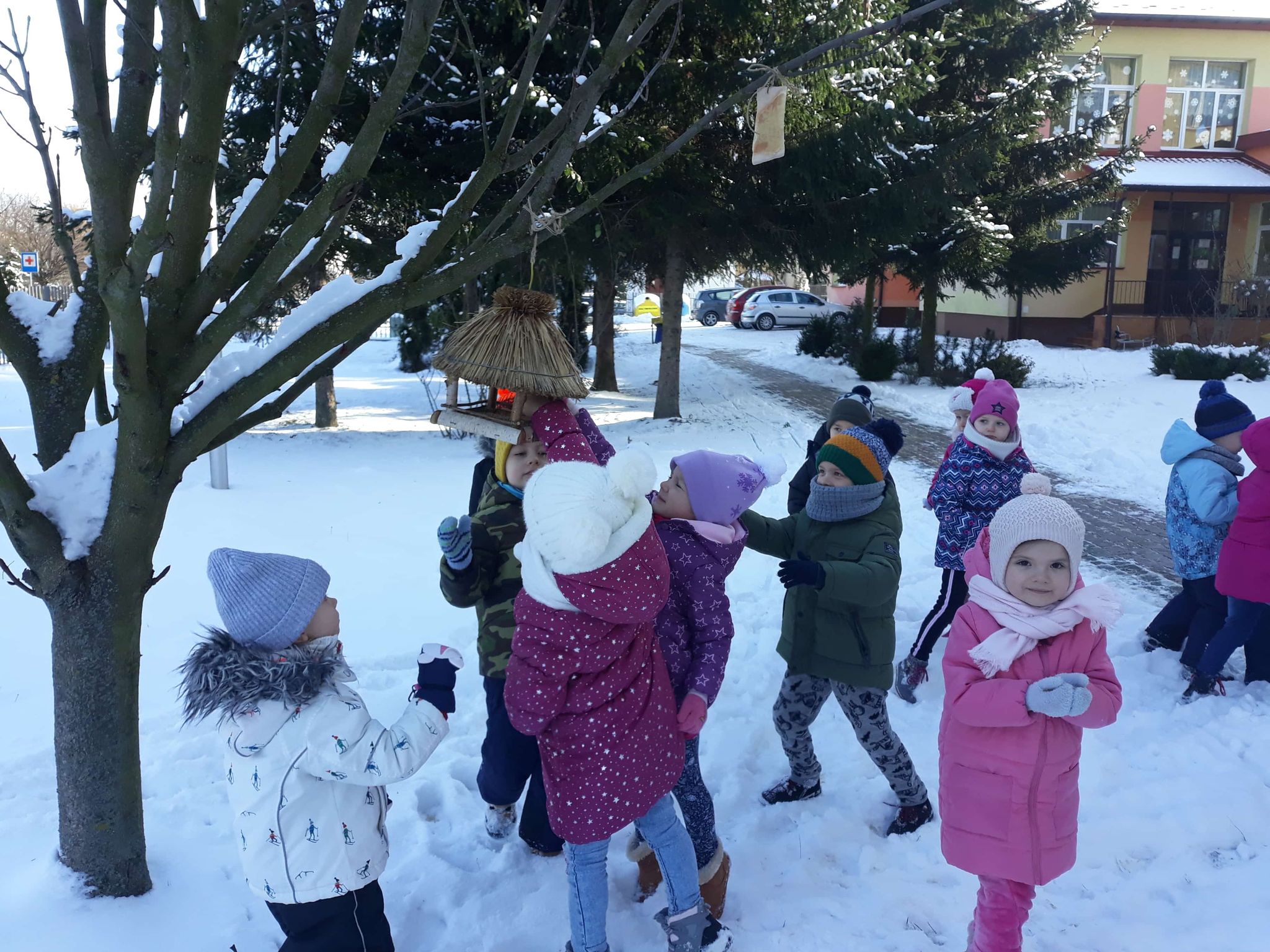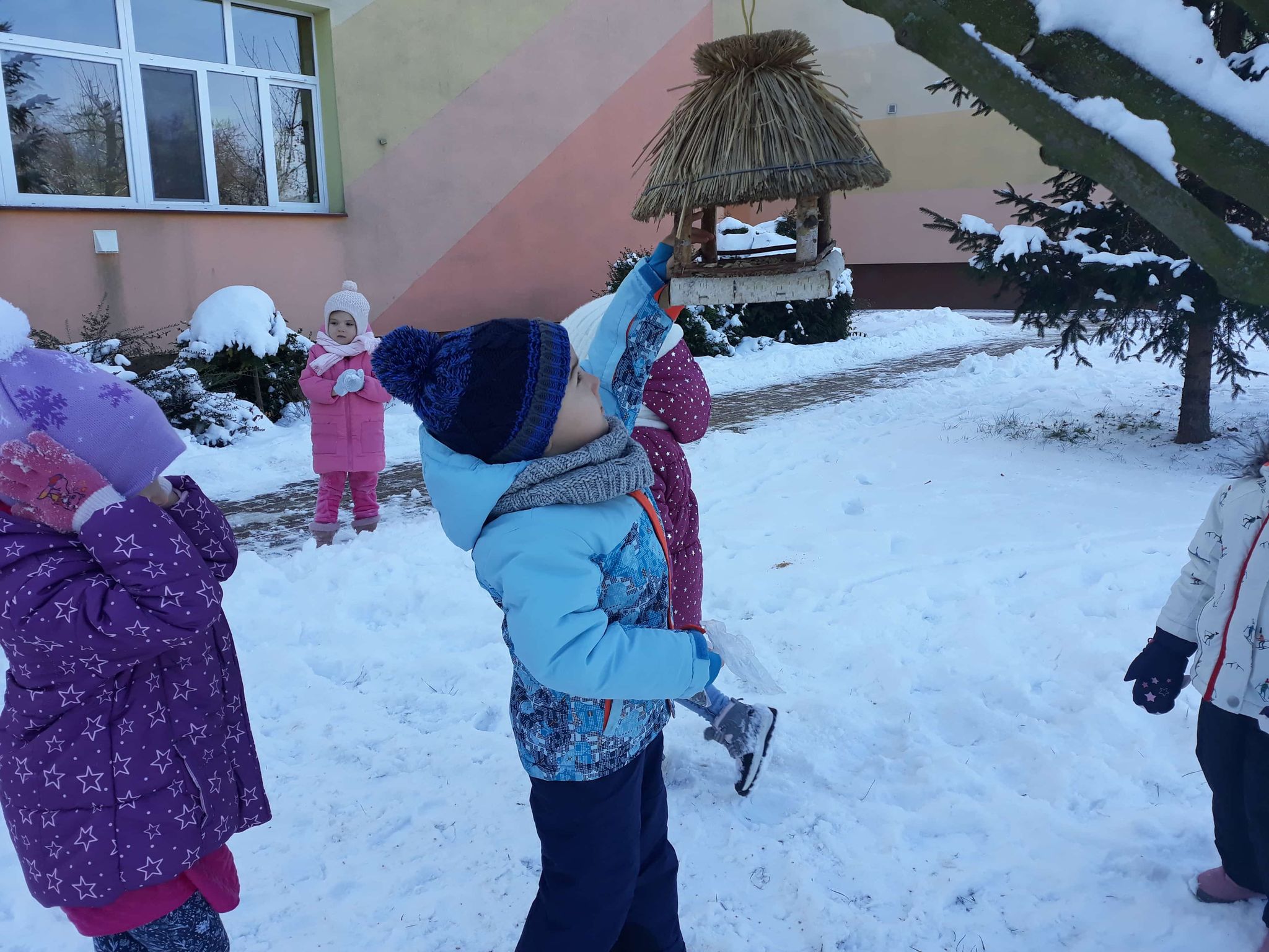 Kotki dokarmiają ptaki zimą