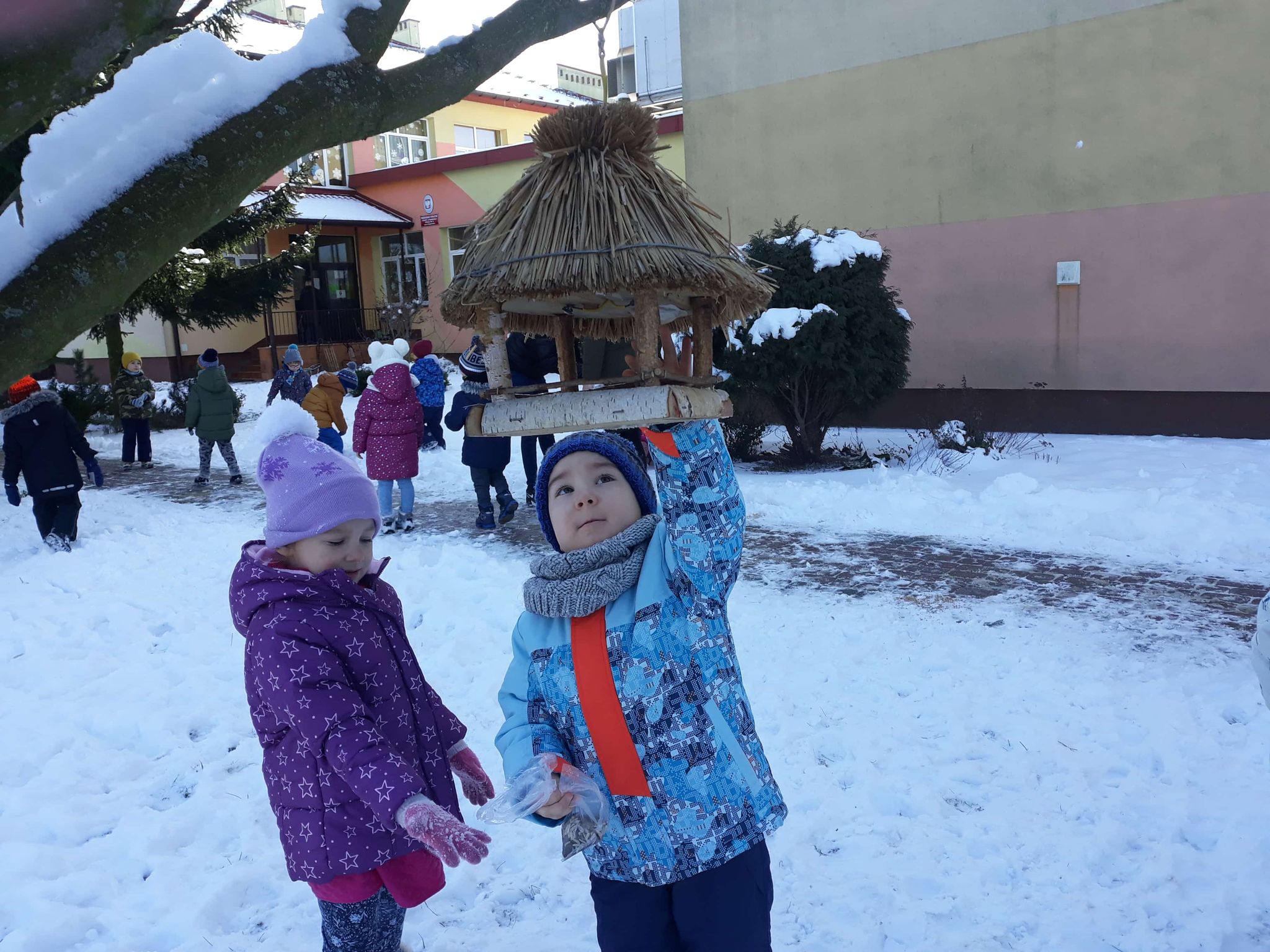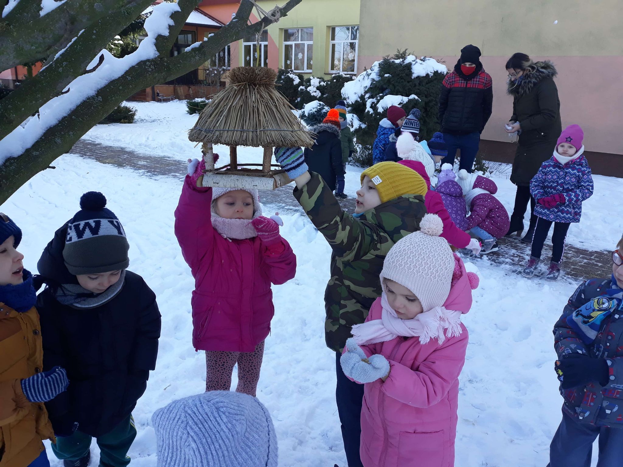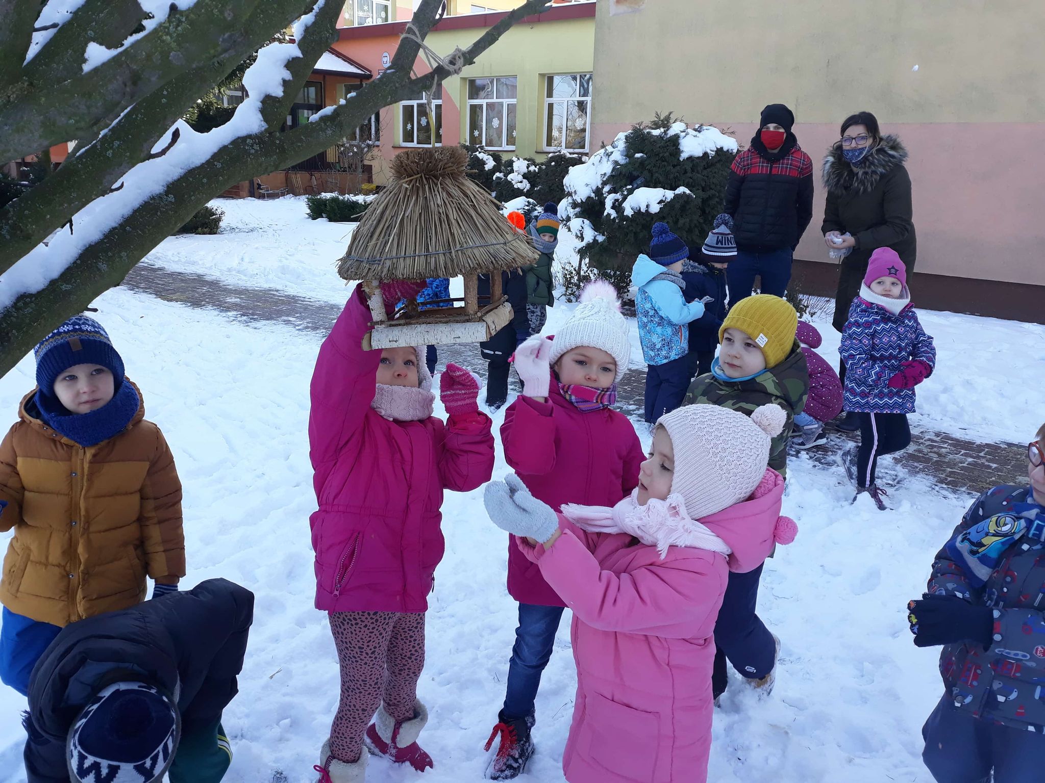 Kotki dokarmiają ptaki zimą